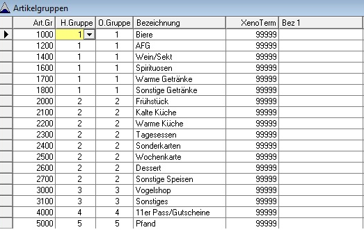 1. Überprüfen Sie Ihre Artikelgruppen, ob diese für Speisen fortlaufend angelegt sind.
